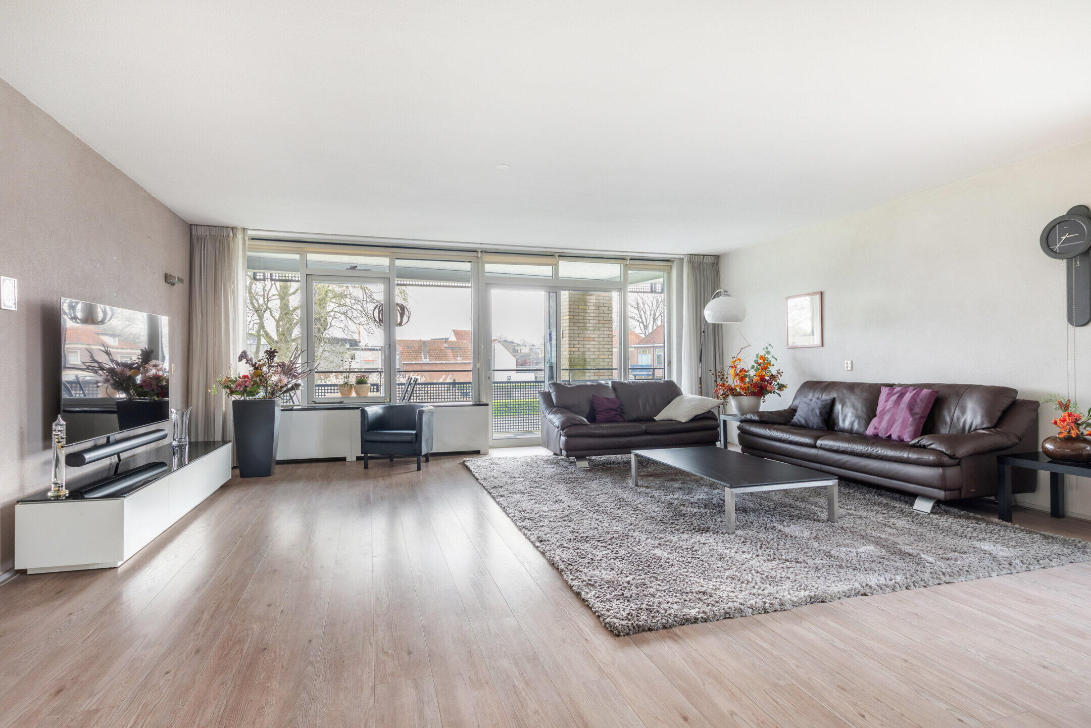 - Voorzien van hardhouten kozijnen (op de schuifpui naar het balkon na, deze is van aluminium);