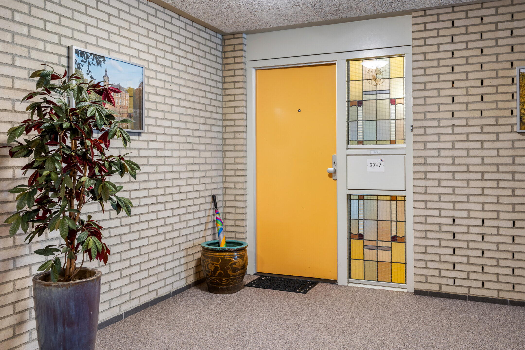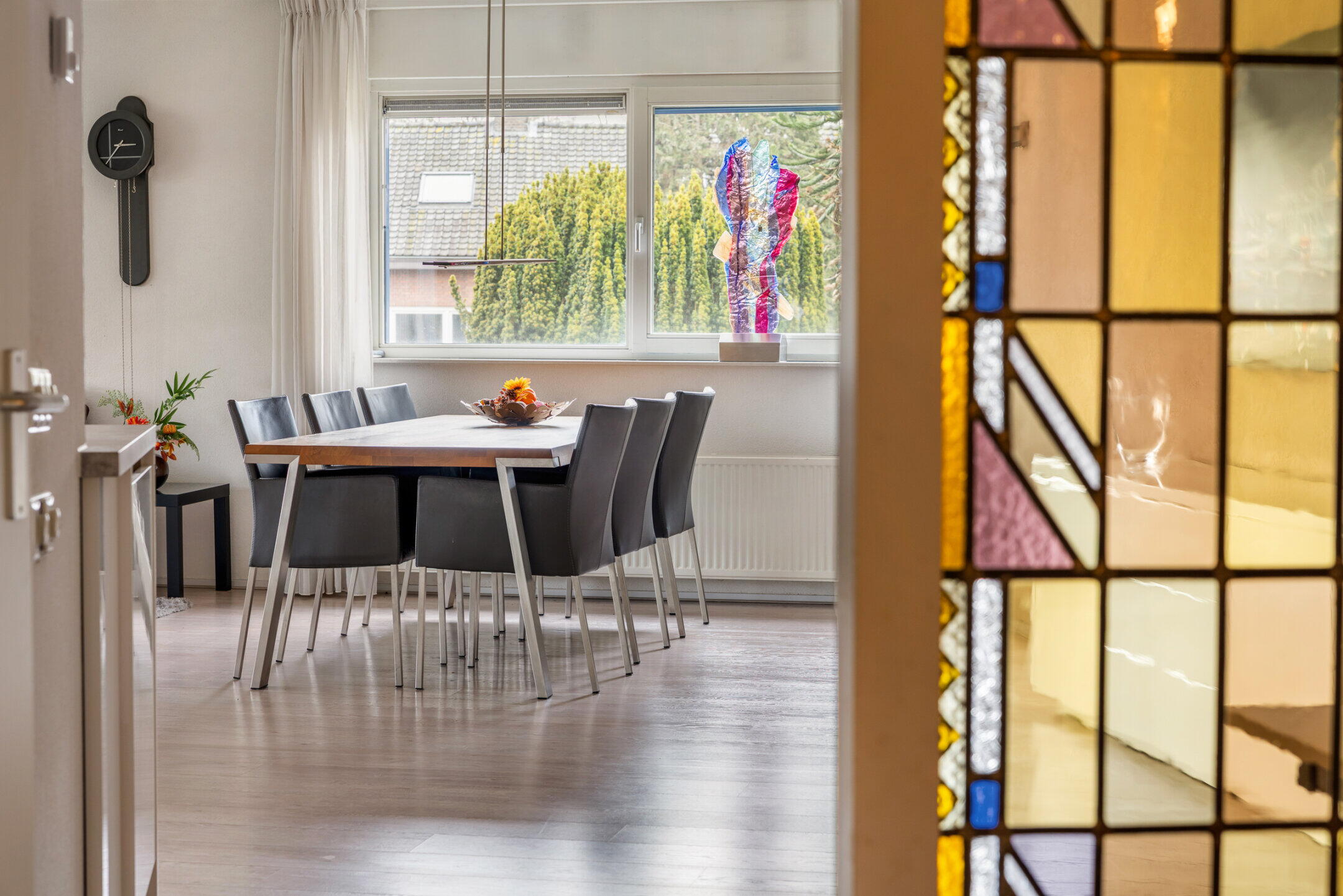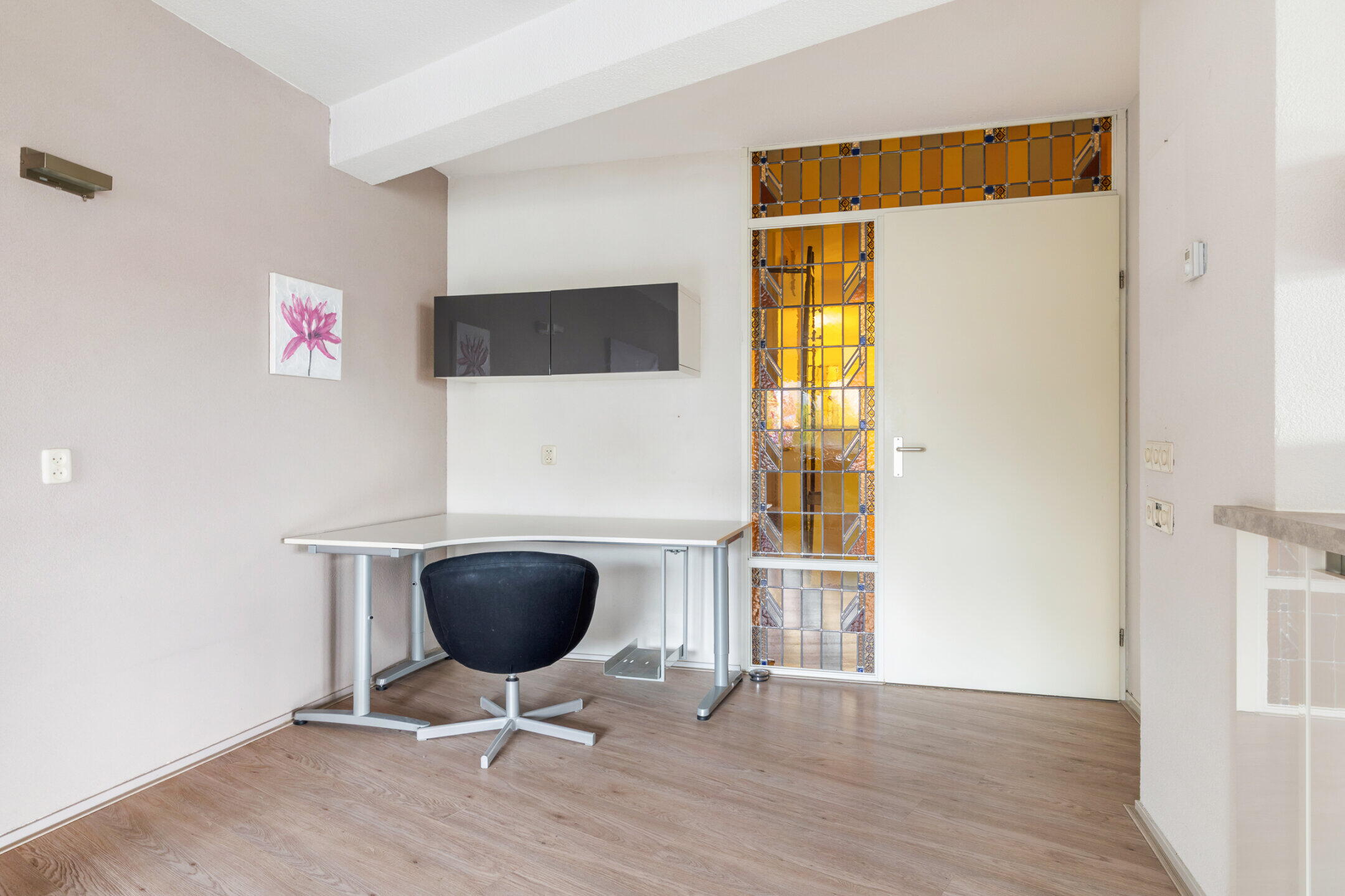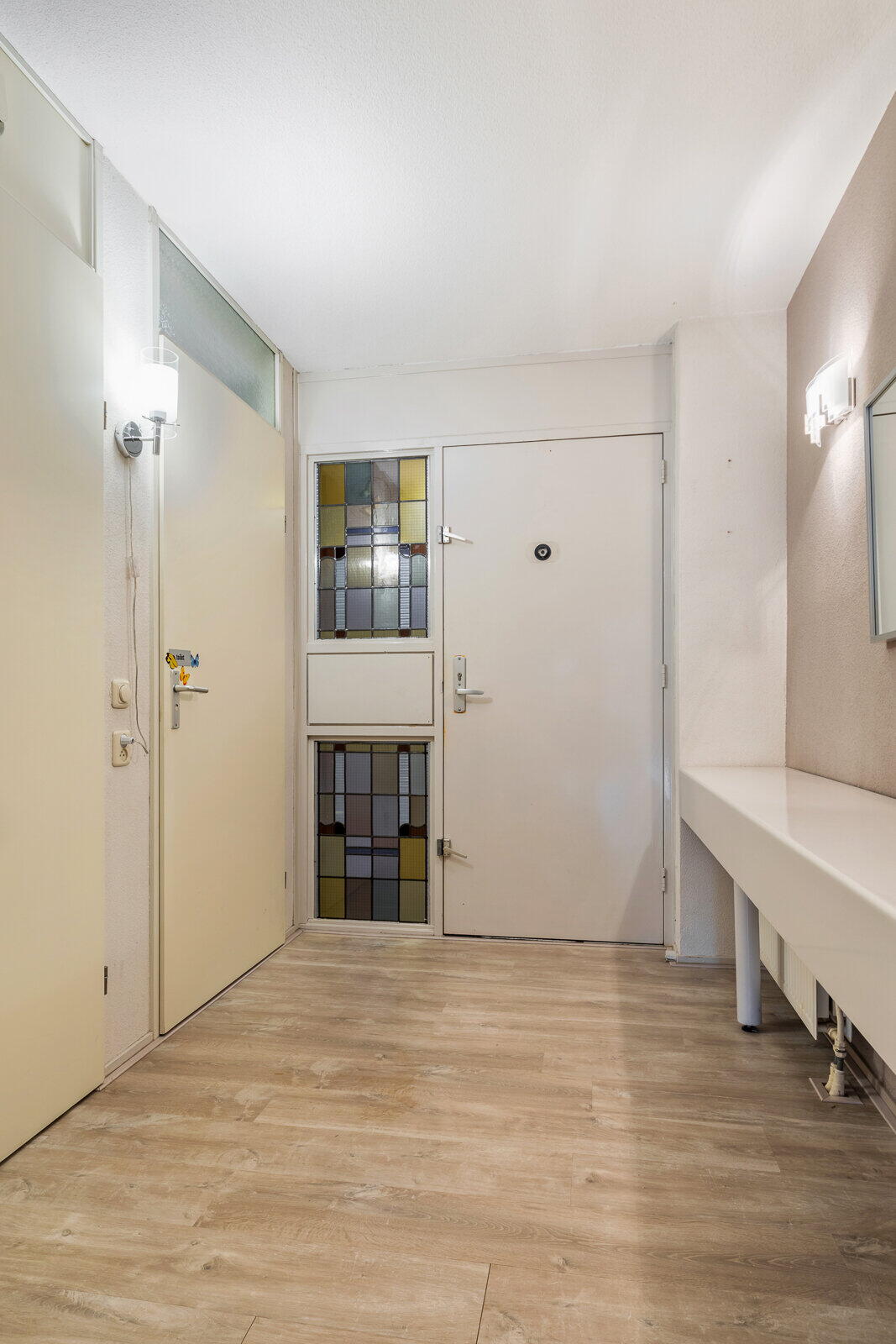 - De glas-in-lood raampartij naast de voordeur is een knipoog naar het verleden en is afkomstig uit het voormalige Moederheil Klooster dat vroeger op deze locatie was gevestigd;