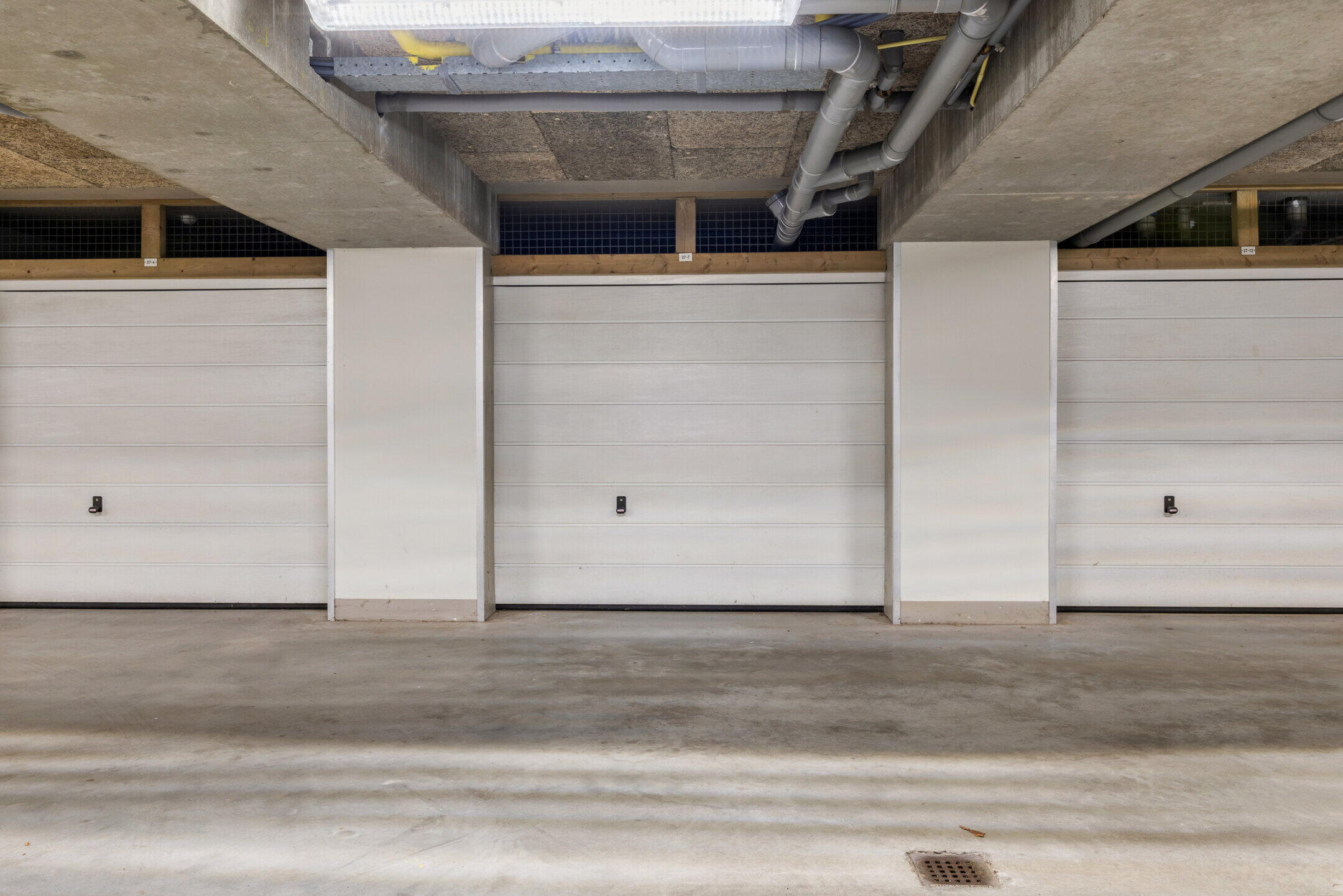 In de afsluitbare parkeerkelder onder het complex vinden we de eigen garagebox (ca. 6.20 x 3.05m). De parkeerkelder is tevens bereikbaar via de lift.